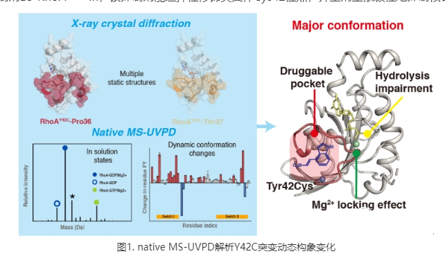 Ras超家族蛋白是控制细胞基本分子活动的关键开关,其异常活性与多种人类肿瘤的发生密切相关,是重要的治疗干预靶点。然而,由于这些蛋白具有内在的高度动态特性且缺乏明确的结合口袋,长期以来被新药研发领域视为“不可成药”的巨大挑战。这一治疗难题在由RhoA特定突变(如弥漫性胃癌中高发的Y42C变异体)驱动的癌症中尤为突出。通常情况下,RhoA在失活的GDP结合态和活跃的GTP结合态之间循环。而其Y42C突变不仅会损害GTP的水解,还会导致异常的蛋白积累和持续的致癌信号传导。面对这类由单氨基酸突变诱发的微小且高度动态的构象变化,传统的结构解析方法(如X射线晶体学)往往只能捕捉到非生理状态下的静态结构,难以真实反映蛋白质在溶液中的关键功能构象。