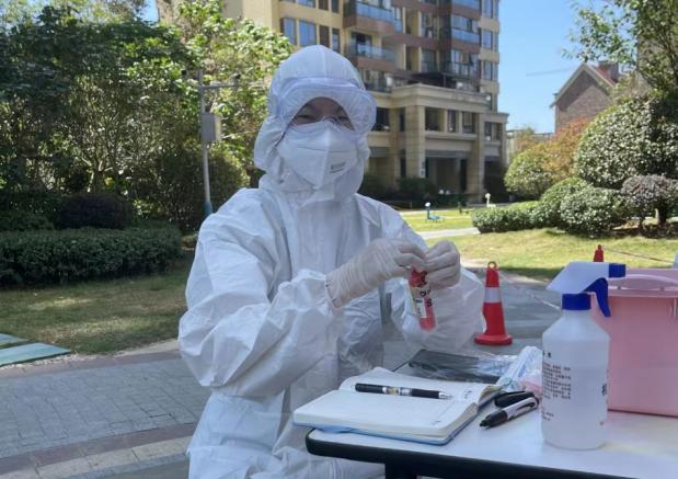 药学院教工第七党支部支部书记康惠,因所在社区疫情管控,只能居家工作。当看到社区工作人员不足、社区疫情防控工作复杂、人心浮动不安,她主动在社区微信群宣传政府政策、个人防护知识、抗疫故事等内容,希望给居家管理的居民传播更多的正能量。她积极报名参加社区核酸检测志愿服务,负责数据统计、医生助理,并帮助行动不便的老人完成核酸检测。每当完成工作时,身穿防护服的她已经满脸通红,汗透衣背。虽然过程很辛苦,却感受到了为社区群众服务的快乐!感受到了全心全意为人民服务的自豪!