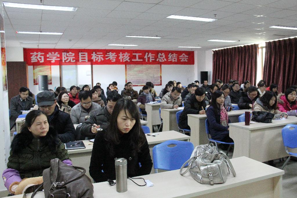 2013年12月31日,药学楼2013年目标考核工作总结会在8楼多功能厅举行,全院八十余名教职工参会。会议由药学院党委书记席晓岚主持。