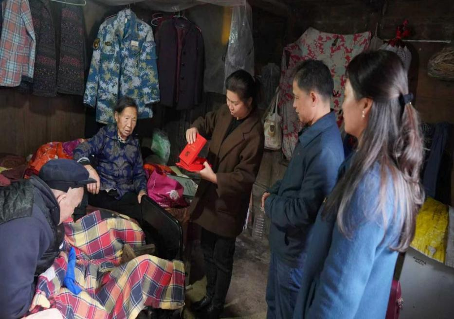 上午,药学院一行首先抵达八弓镇蜜蜂村。在我院驻蜜蜂村“第一书记”陈帅帅及村支两委代表的陪同下,药学院一行深入困难群众及抗美援朝老兵家中走访慰问,送去食用油、牛奶、棉被等,详细询问他们的生活近况与健康状况。