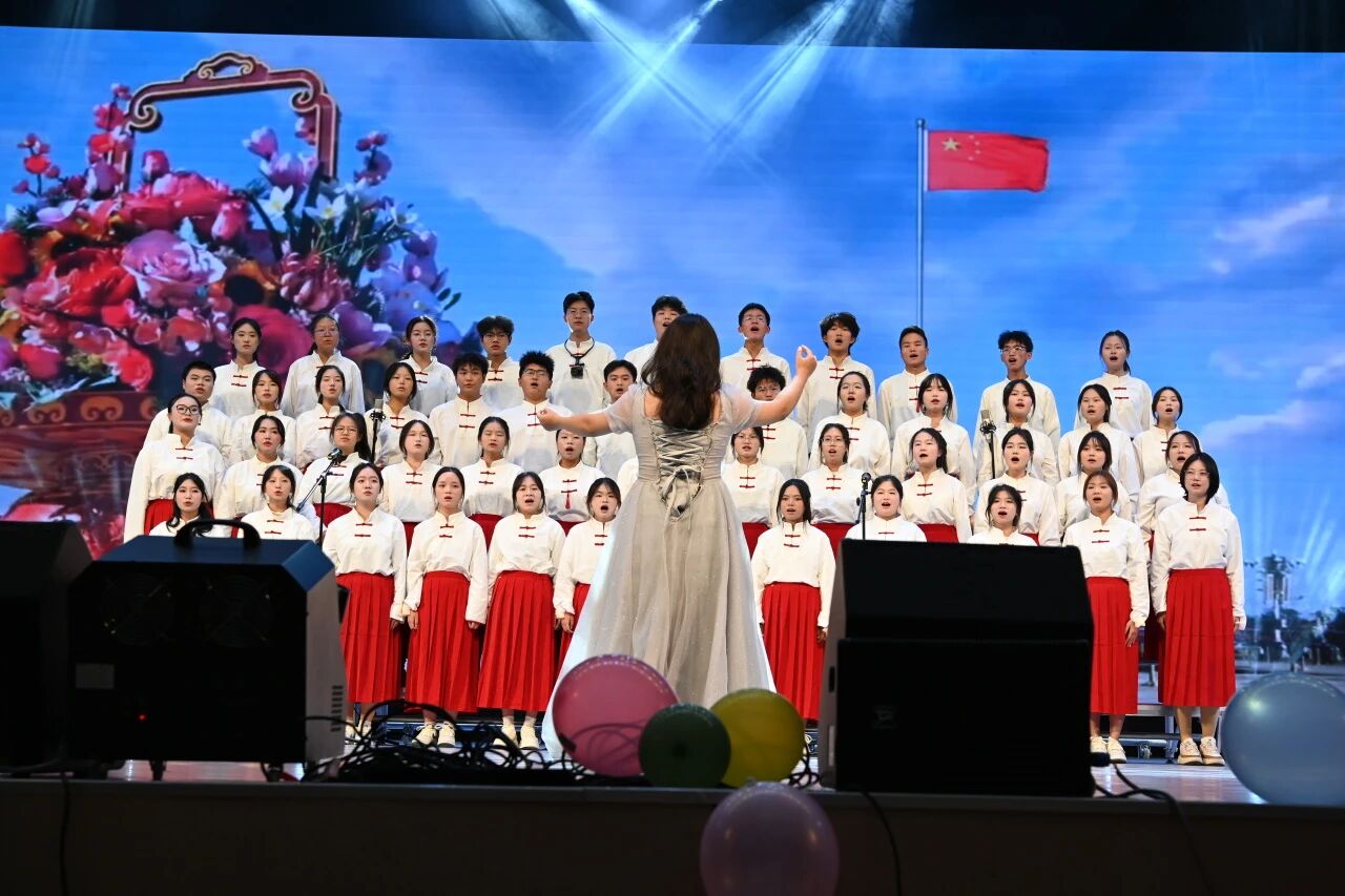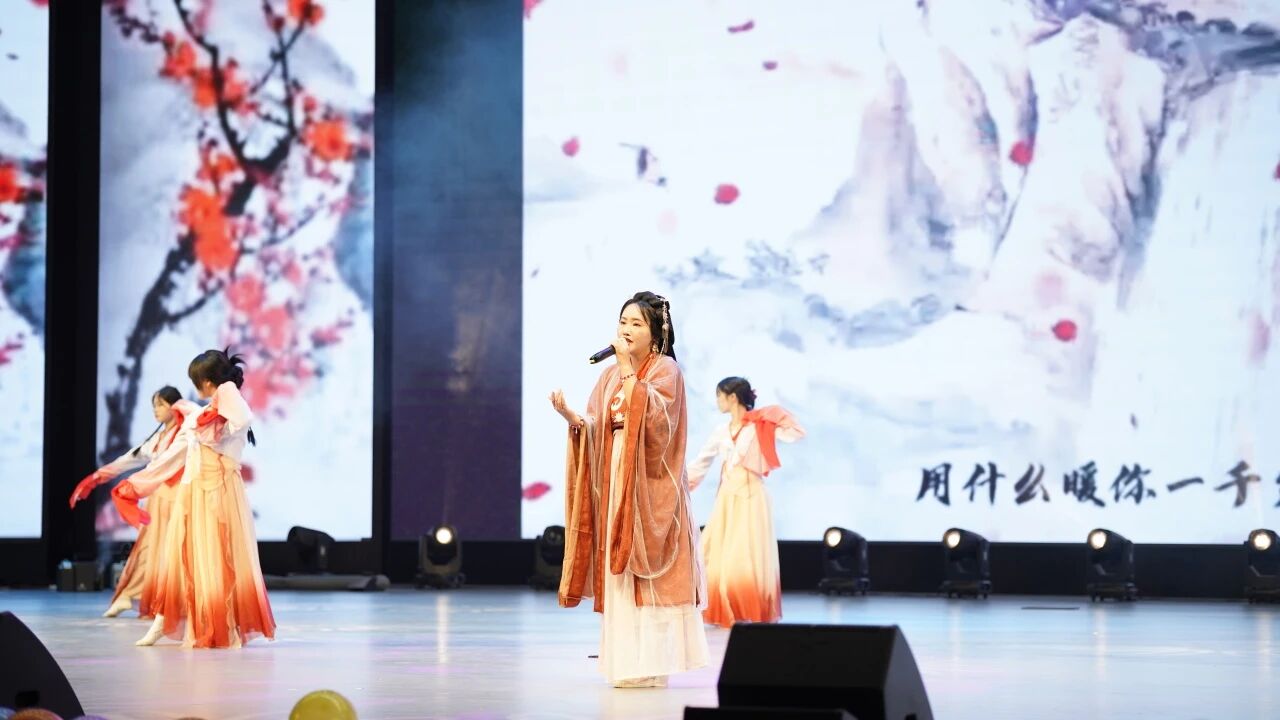 马场镇中心小学学生带来的童声演唱《半生雪》,以清澈嗓音诠释家国情怀,稚嫩却坚定的嗓音仿佛穿越山河岁月,将家国情怀化作飘落的雪花,轻轻覆在每位观众的心间。《牵丝戏》的演绎更添一份古典意境,细腻婉转的声线,将歌曲中蕴含的故事与情感娓娓道来,也让大家在悠扬曲调中感受东方美学的独特韵味。