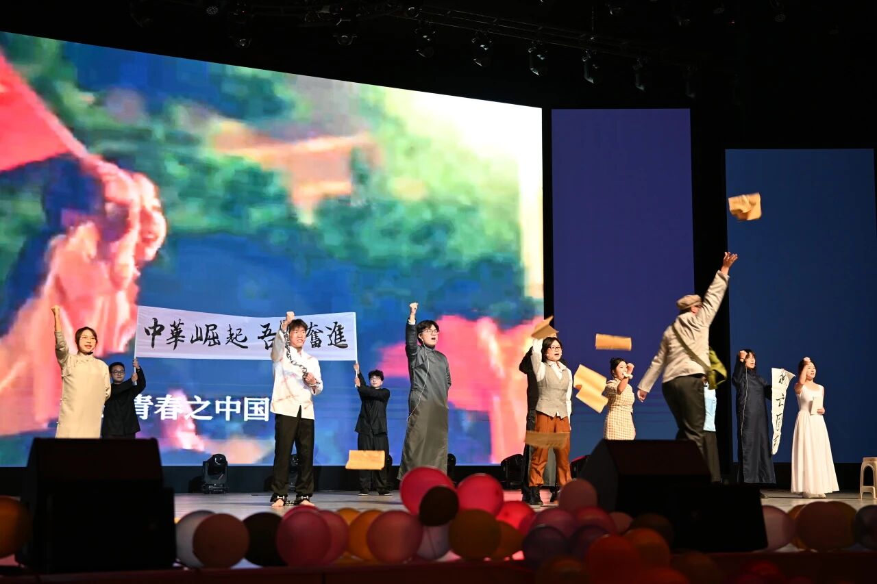 本次晚会紧扣 “致敬先辈、喜迎新生” 双重主题,开篇即以情景朗诵《觉醒年代》点燃全场。表演者以铿锵语调,再现百年前积贫积弱的中国背景下,革命先辈为救亡图存不屈抗争的历史场景,激昂的演绎引发新生强烈共鸣。